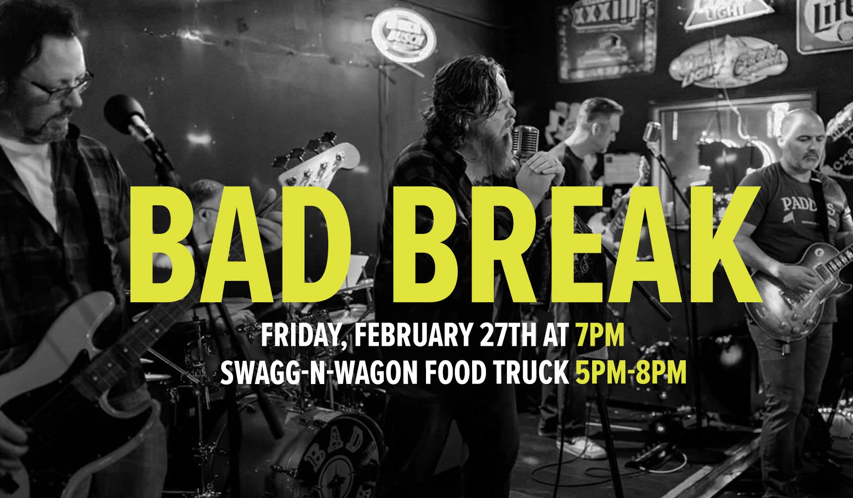 Join us on Friday February 27th for live music with Bad Break! Get ready for some rockin 90’s, grunge, and classic rock, with amazing eats from Swagg-n-Wagon. The food truck is serving up crispy fried wings, drumsticks, strips, and what might be the best spicy chicken sandwich in the Northwest. Perfect to be paired with a crisp pint of The Leafcutter.